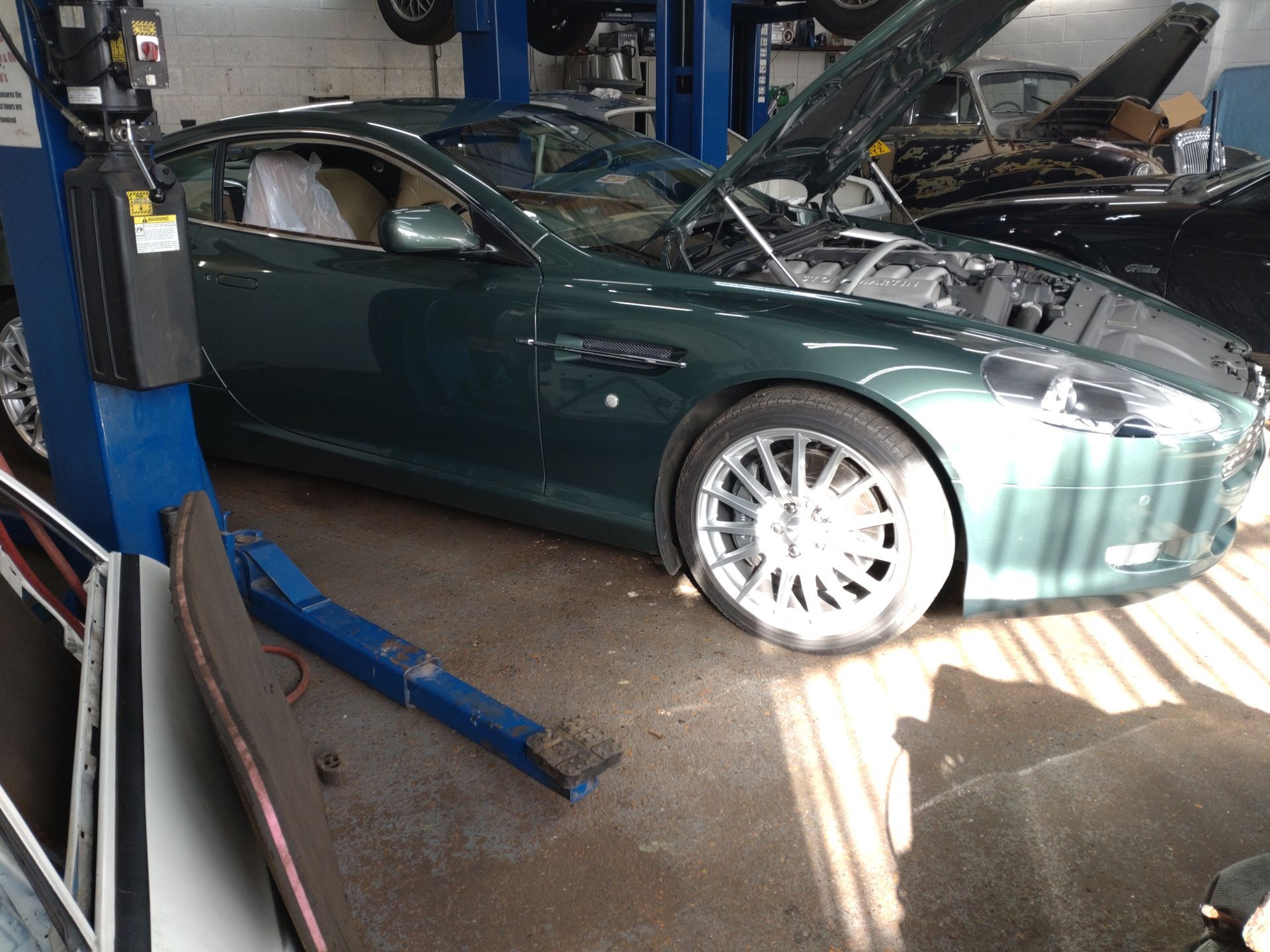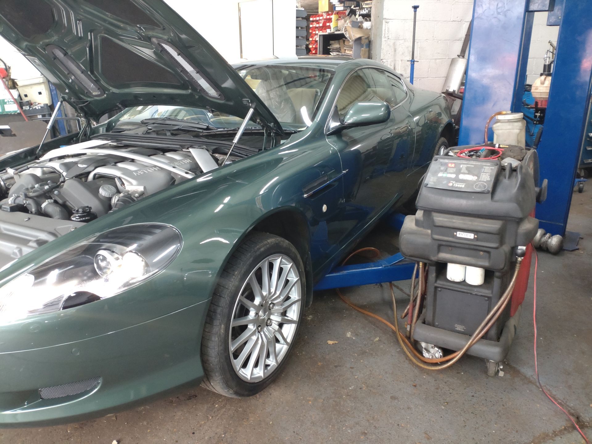 Aston Martin DB9 undergoing and transmission filter change and full transmission fluid flush